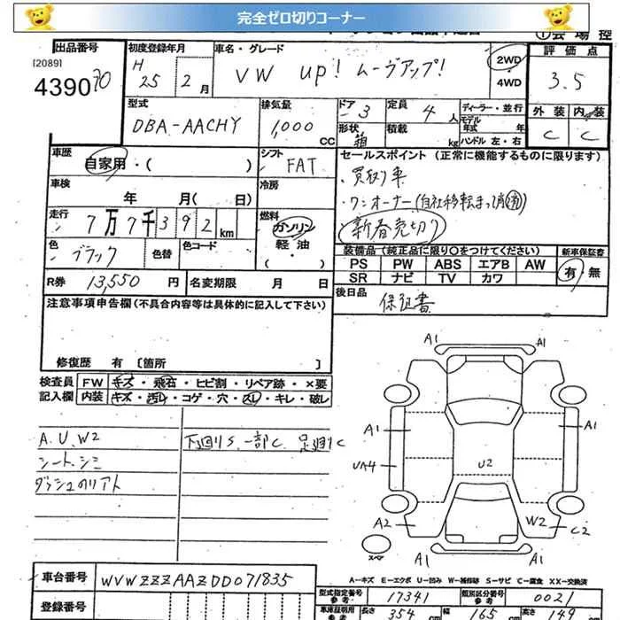 Volkswagen UP с аукциона Японии JU Miyagi лот № 4390