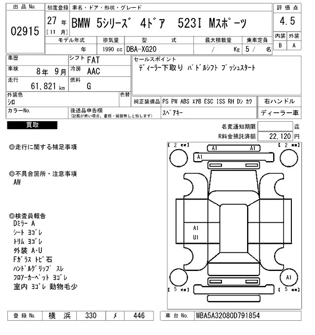 BMW 5-Series с аукциона Японии ARAI Bayside лот № 2915