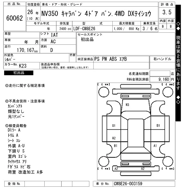 Nissan CARAVAN VAN с аукциона Японии ARAI Bayside лот № 60062