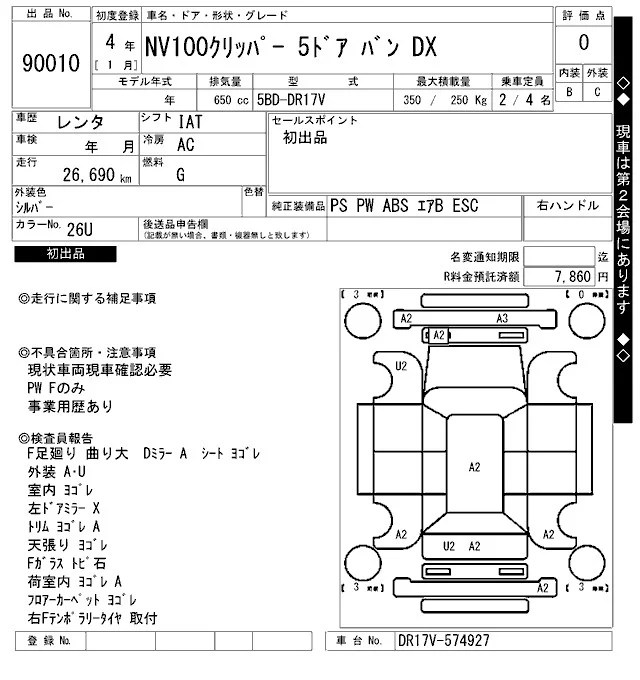 Nissan CLIPPER VAN с аукциона Японии ARAI Bayside лот № 90010