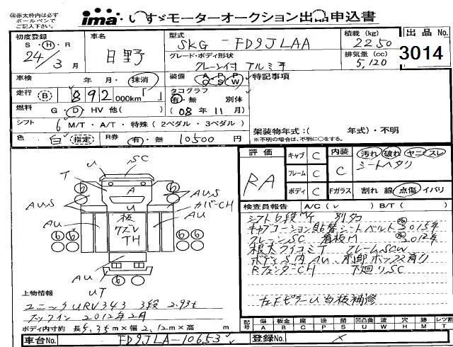 Hino RANGER с аукциона Японии Isuzu Kobe лот № 3014
