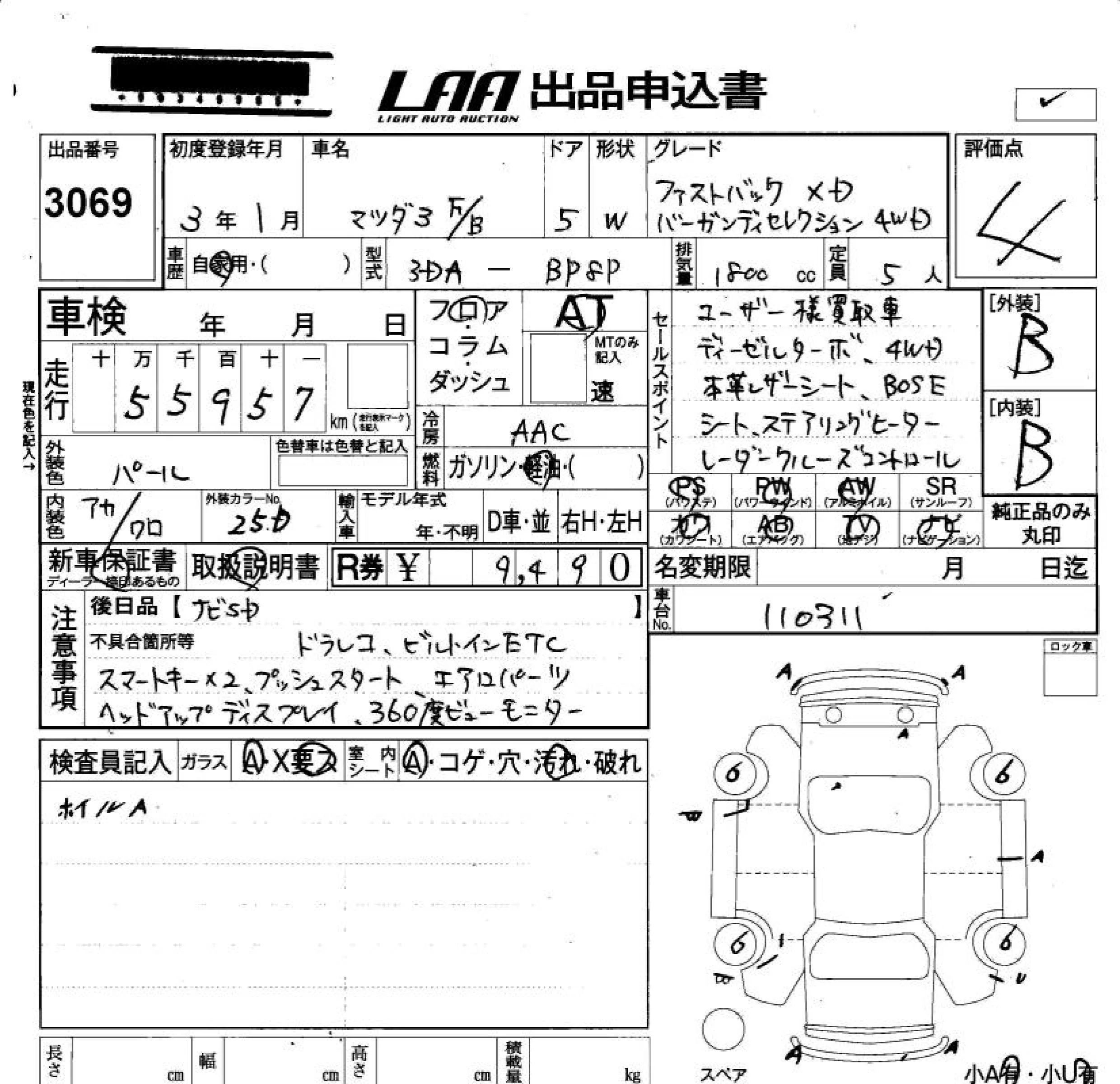 Mazda MAZDA3 с аукциона Японии LAA Okayama лот № 3069