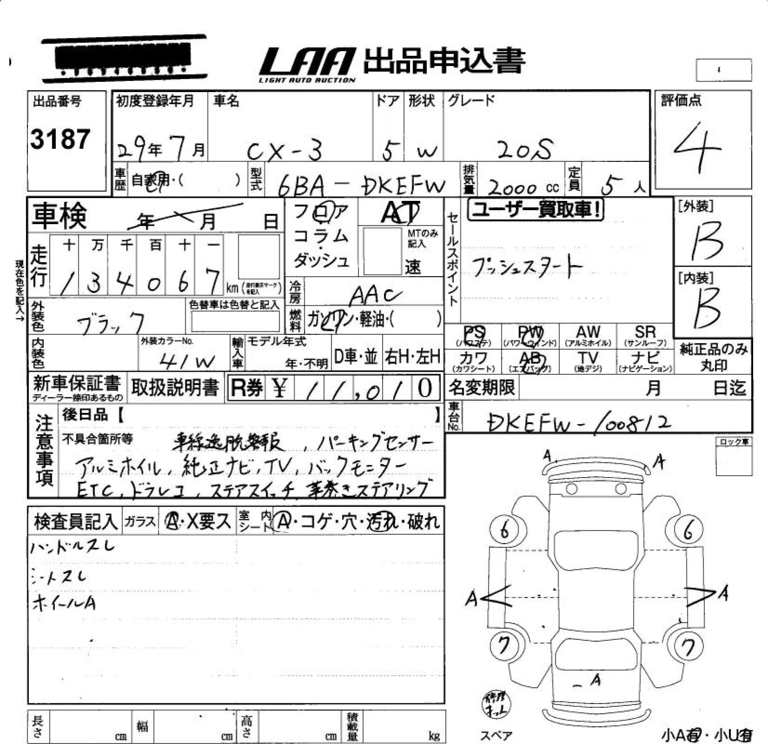 Mazda CX-3 с аукциона Японии LAA Okayama лот № 3187