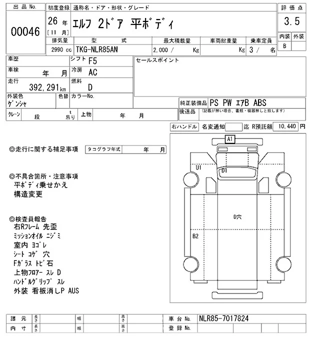 Isuzu ELF с аукциона Японии ARAI Oyama VT лот № 46