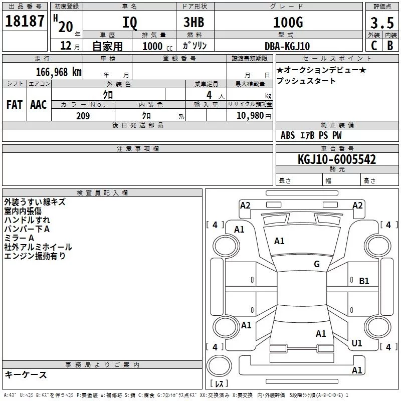 Toyota IQ с аукциона Японии TAA Yokohama лот № 18187