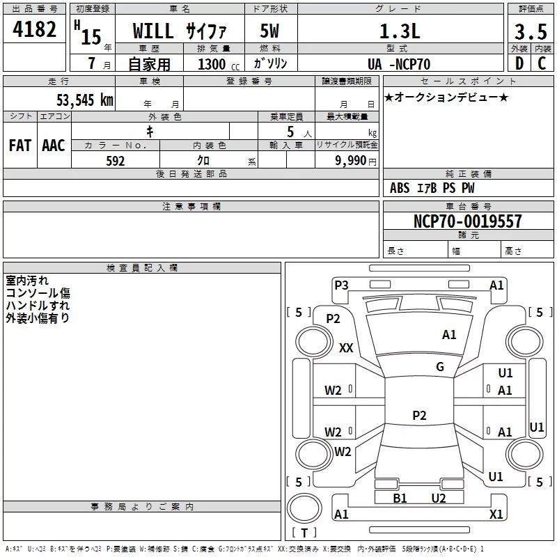 Toyota WILL с аукциона Японии TAA Yokohama лот № 4182