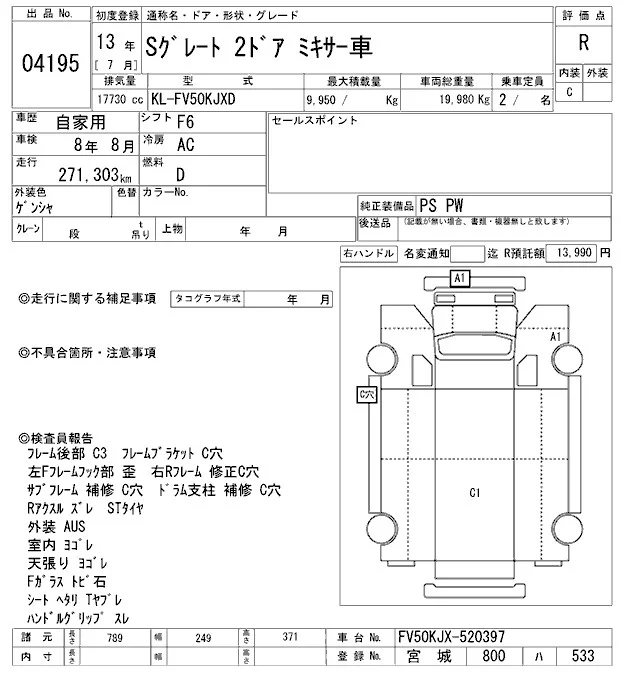 Mitsubishi SUPER GREAT с аукциона Японии ARAI Oyama VT лот № 4195