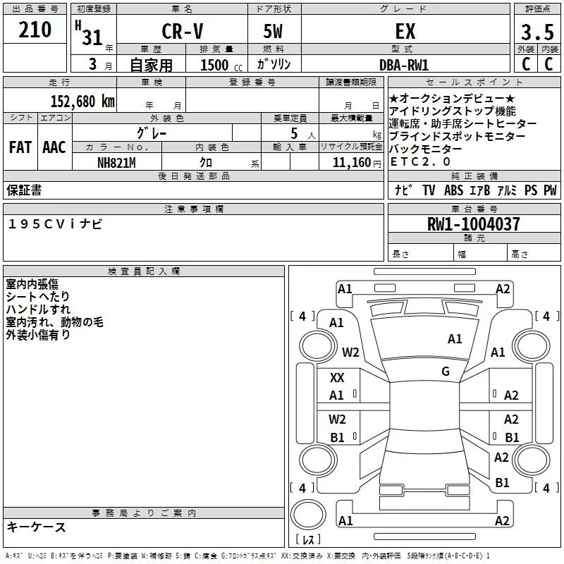 Honda CR-V с аукциона Японии TAA Yokohama лот № 210