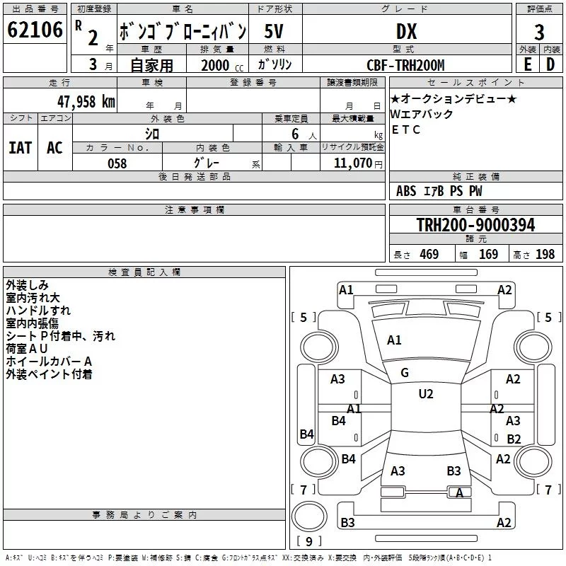 Mazda BONGO BRAWNY VAN с аукциона Японии TAA Yokohama лот № 62106