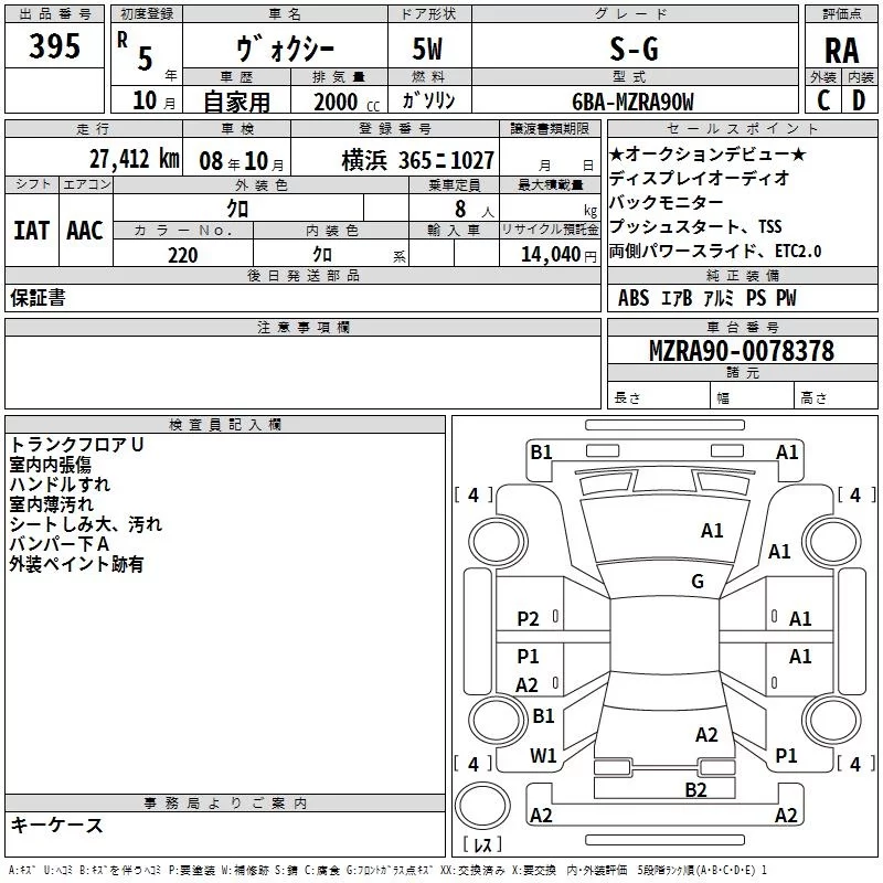 Toyota VOXY с аукциона Японии TAA Yokohama лот № 395