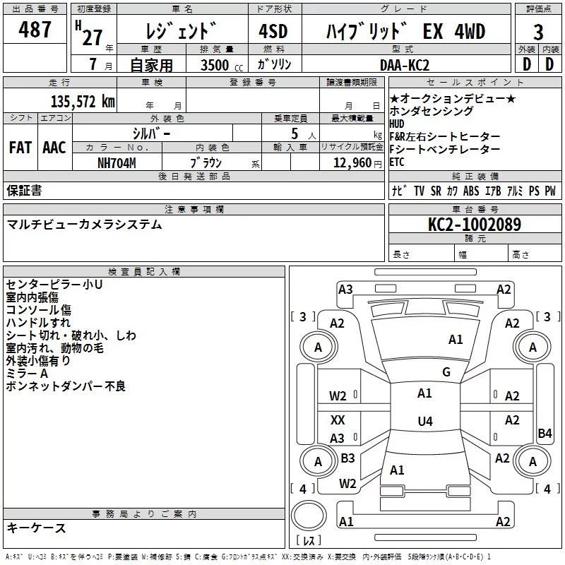 Honda LEGEND с аукциона Японии TAA Yokohama лот № 487