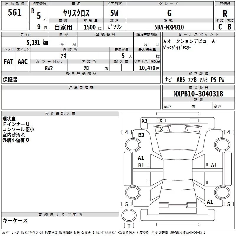 Toyota YARIS CROSS с аукциона Японии TAA Yokohama лот № 561