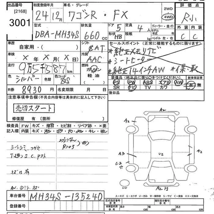 Suzuki WAGON R с аукциона Японии JU Tokyo лот № 3001