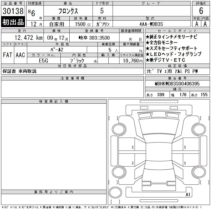 Suzuki FRONX с аукциона Японии CAA Gifu лот № 30138