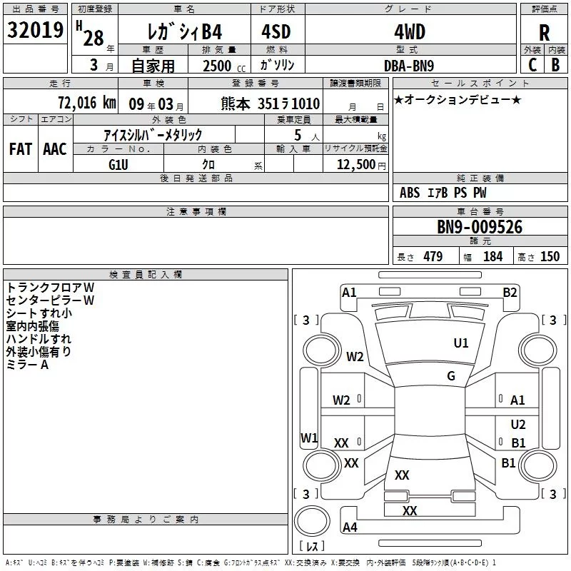 Subaru LEGACY B4 с аукциона Японии TAA Kyushu лот № 32019