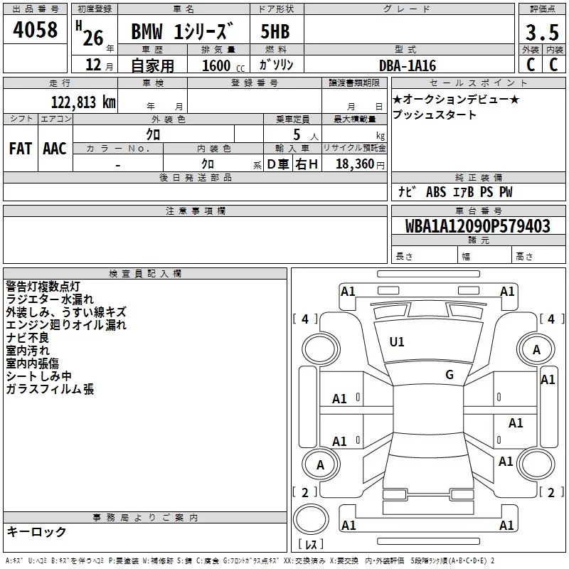 BMW 1-Series с аукциона Японии TAA Hiroshima лот № 4058