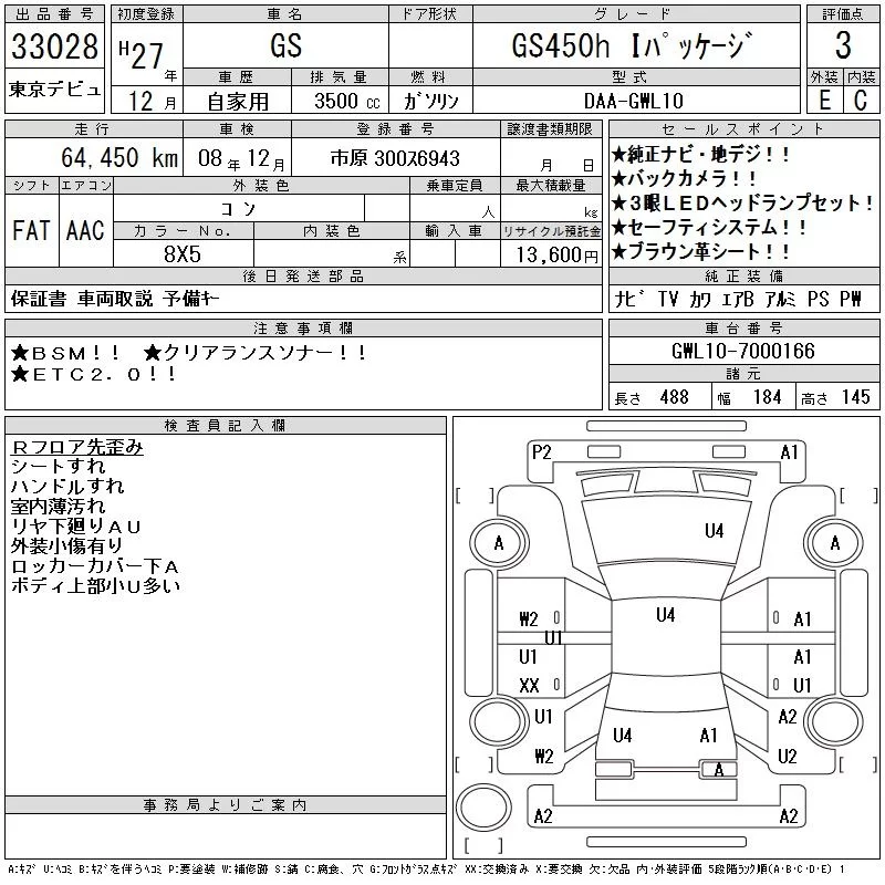 Lexus GS с аукциона Японии CAA Tokyo лот № 33028