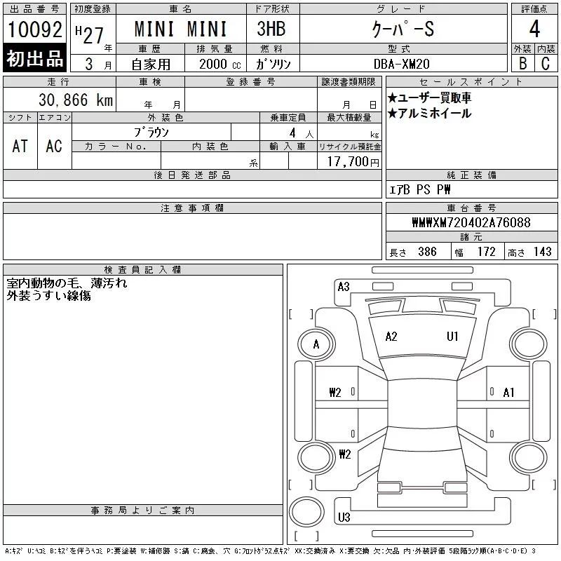 BMW MINI с аукциона Японии CAA Tokyo лот № 10092