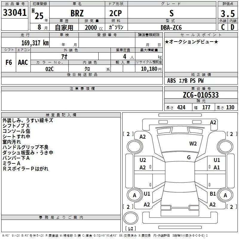 Subaru BRZ с аукциона Японии TAA Kyushu лот № 33041
