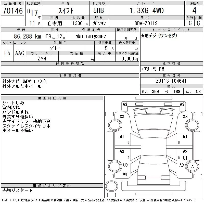 Suzuki SWIFT с аукциона Японии CAA Gifu лот № 70146