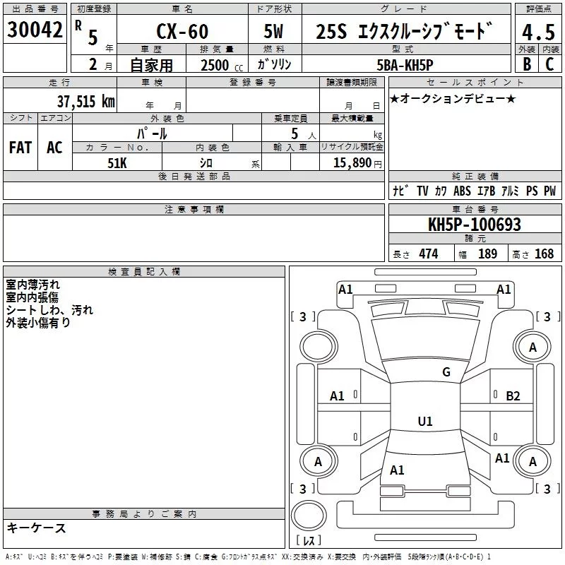 Mazda CX-60 с аукциона Японии TAA Kyushu лот № 30042