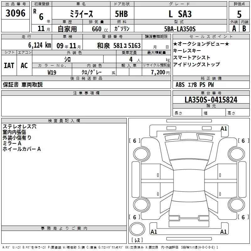 Daihatsu MIRA E S с аукциона Японии TAA Kinki лот № 3096