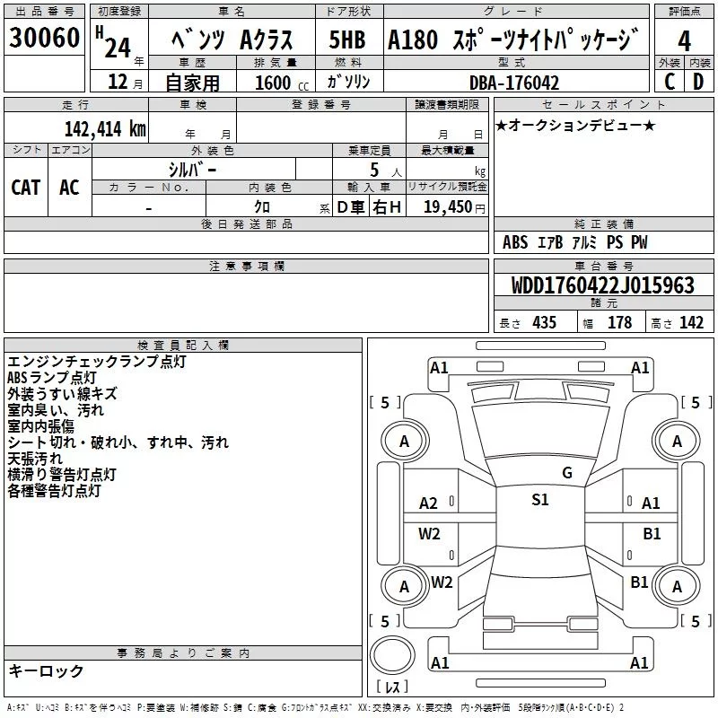 Mercedes-Benz A CLASS с аукциона Японии TAA Kyushu лот № 30060