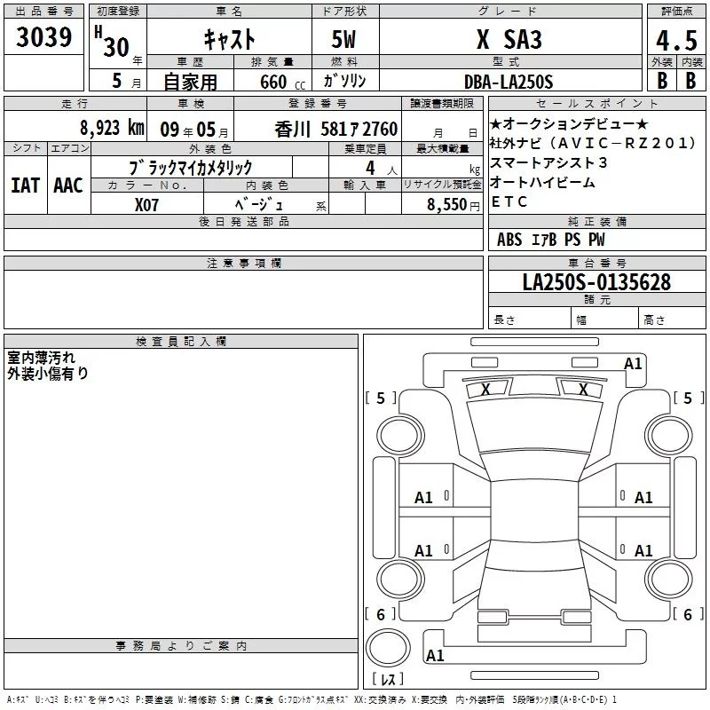 Daihatsu Cast с аукциона Японии TAA Shikoku лот № 3039
