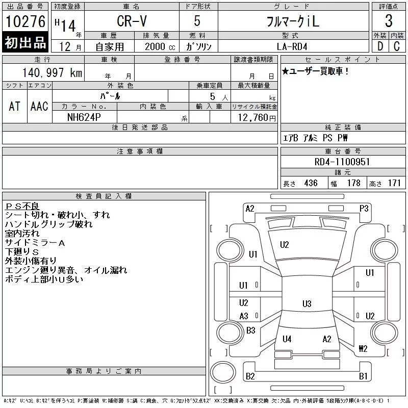 Honda CR-V с аукциона Японии CAA Tokyo лот № 10276