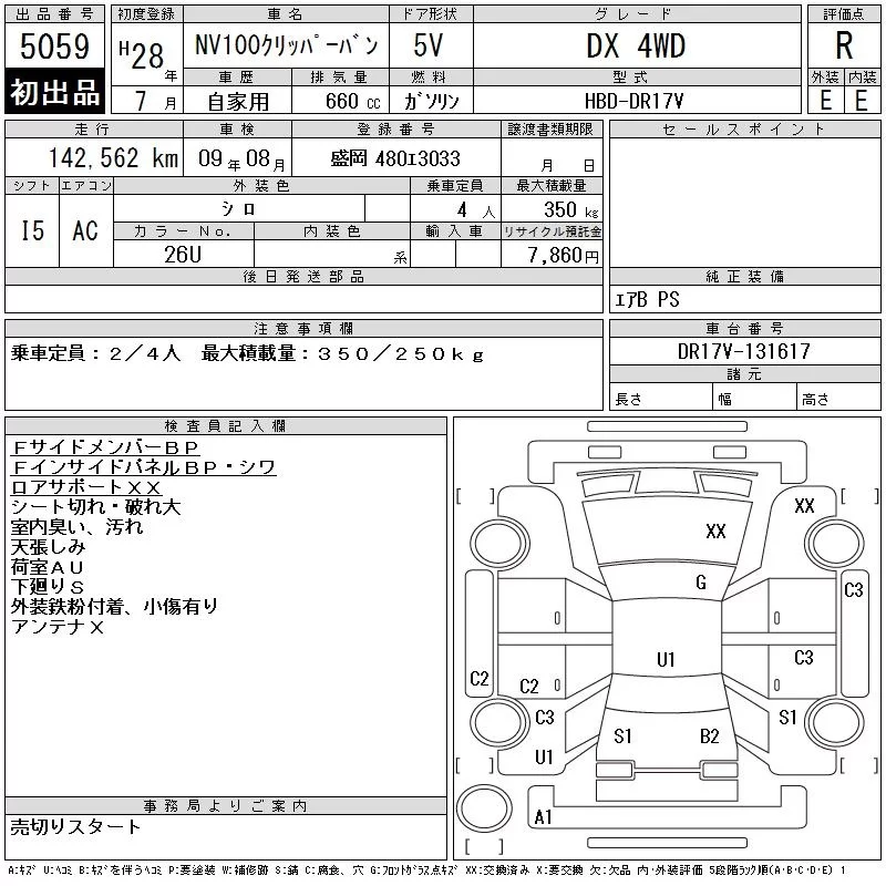 Nissan CLIPPER VAN с аукциона Японии CAA Tohoku лот № 5059