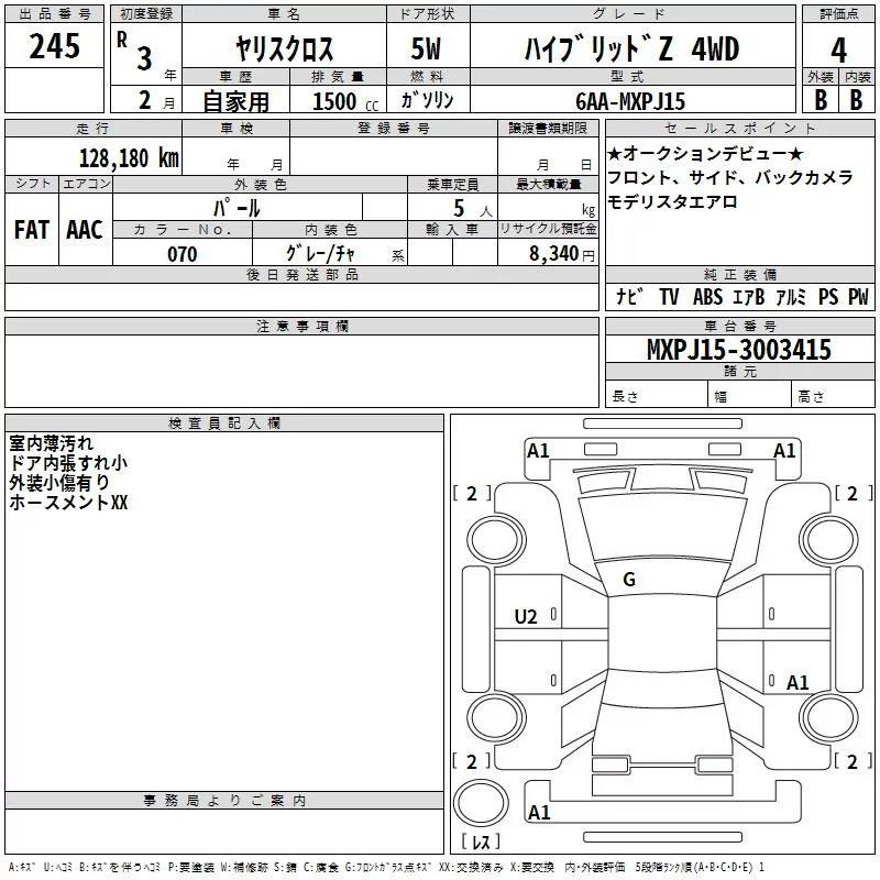 Toyota YARIS CROSS с аукциона Японии TAA Hiroshima лот № 245