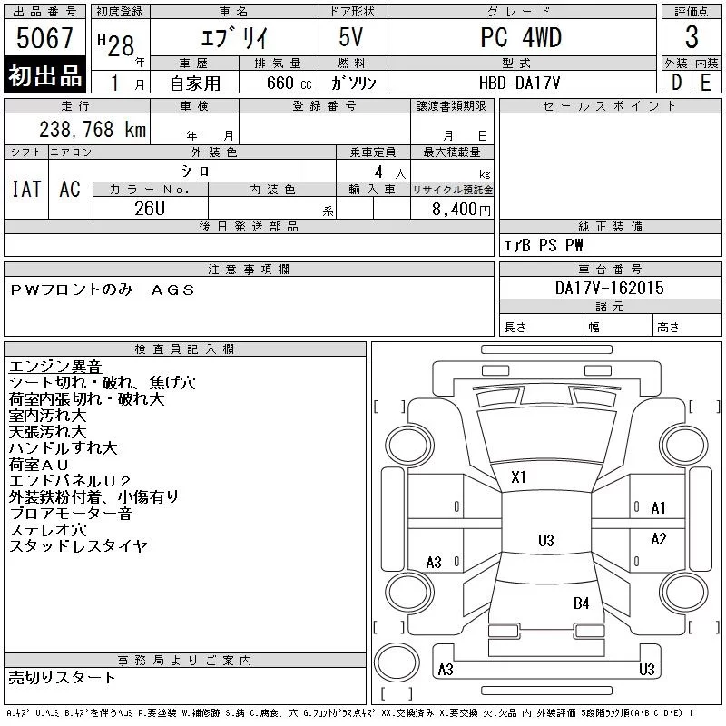 Suzuki EVERY с аукциона Японии CAA Tohoku лот № 5067