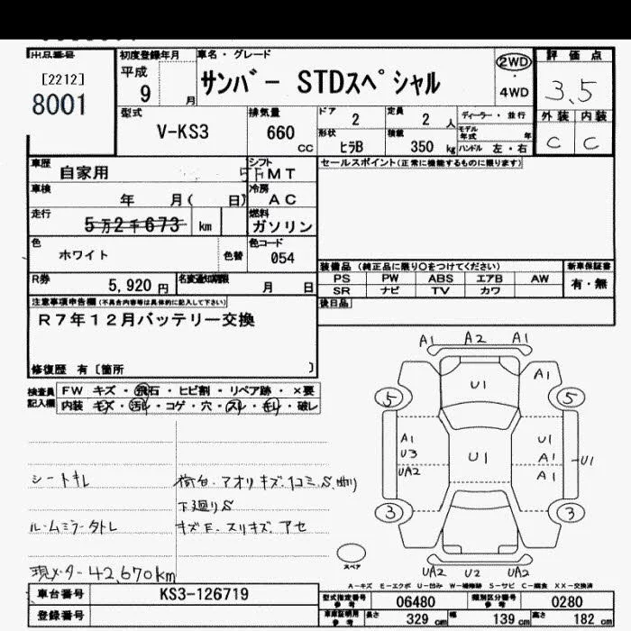 Subaru SAMBAR с аукциона Японии JU Saitama лот № 8001