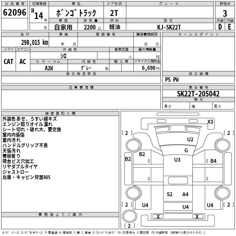 Mazda BONGO с аукциона Японии TAA Kyushu лот № 62096