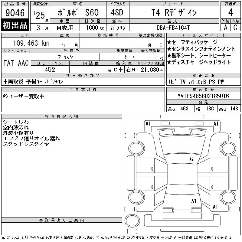 Volvo S60 с аукциона Японии CAA Tohoku лот № 9046