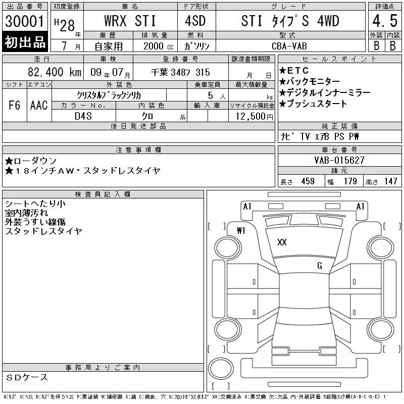 Subaru WRX с аукциона Японии CAA Tokyo лот № 30001