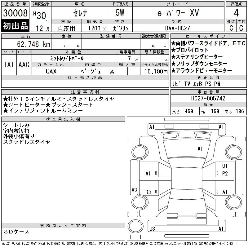 Nissan SERENA с аукциона Японии CAA Tokyo лот № 30008