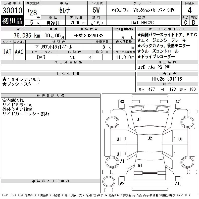 Nissan SERENA с аукциона Японии CAA Tokyo лот № 30010