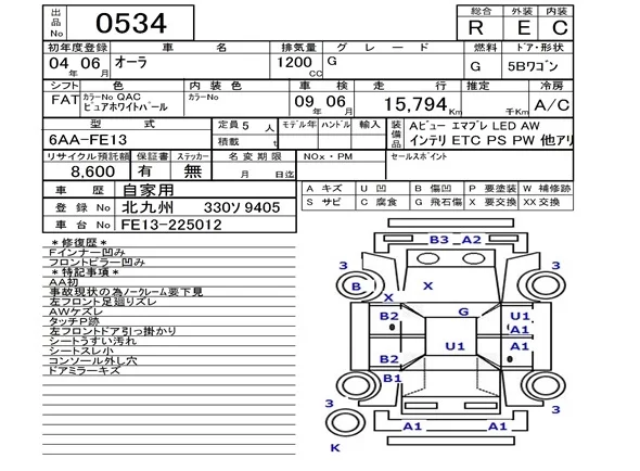 Nissan AURA с аукциона Японии NAA Fukuoka лот № 534