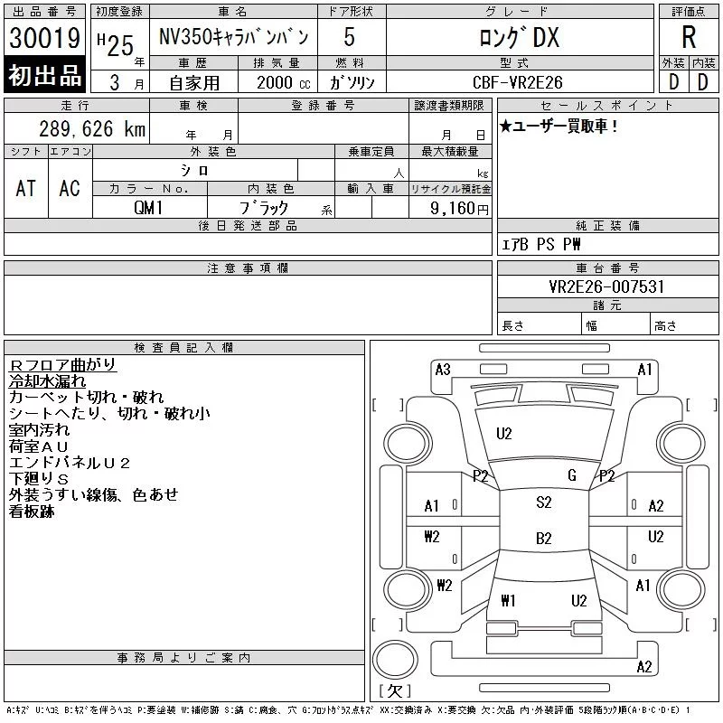 Nissan CARAVAN VAN с аукциона Японии CAA Tokyo лот № 30019