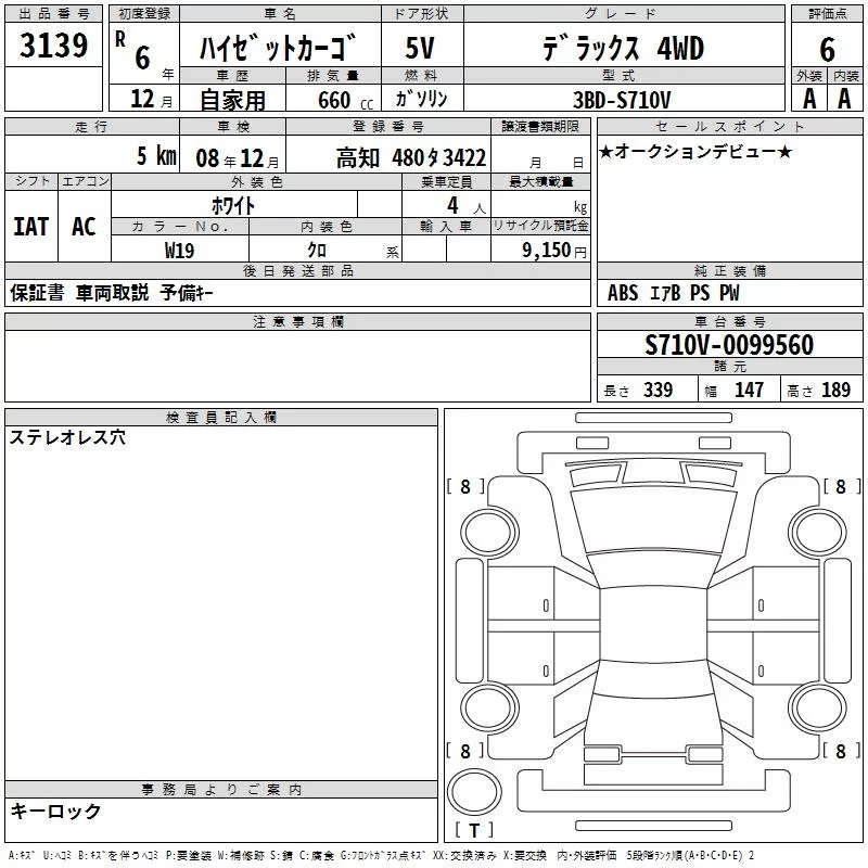 Daihatsu HIJET VAN с аукциона Японии TAA Shikoku лот № 3139