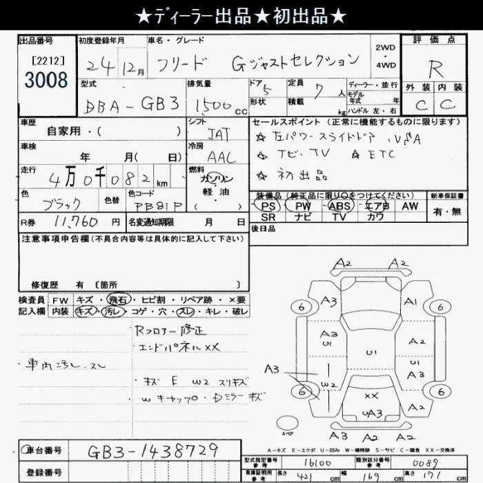 Honda FREED с аукциона Японии JU Saitama лот № 3008