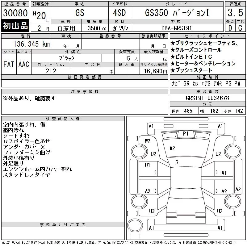 Lexus GS с аукциона Японии CAA Tokyo лот № 30080