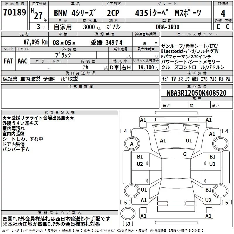 BMW 4-Series с аукциона Японии TAA Shikoku лот № 70189