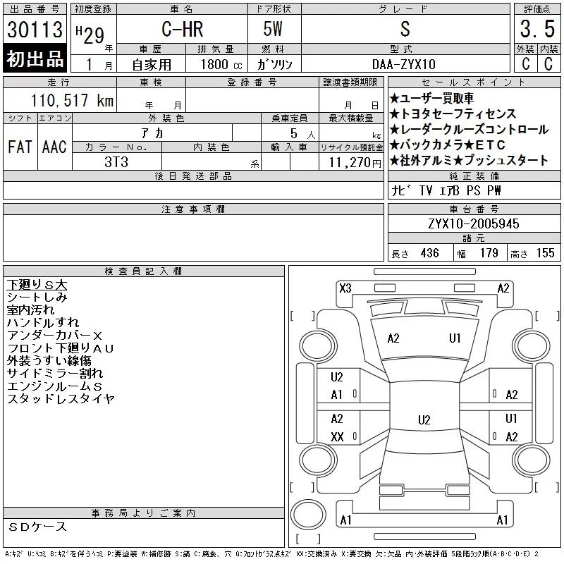 Toyota C-HR с аукциона Японии CAA Tokyo лот № 30113