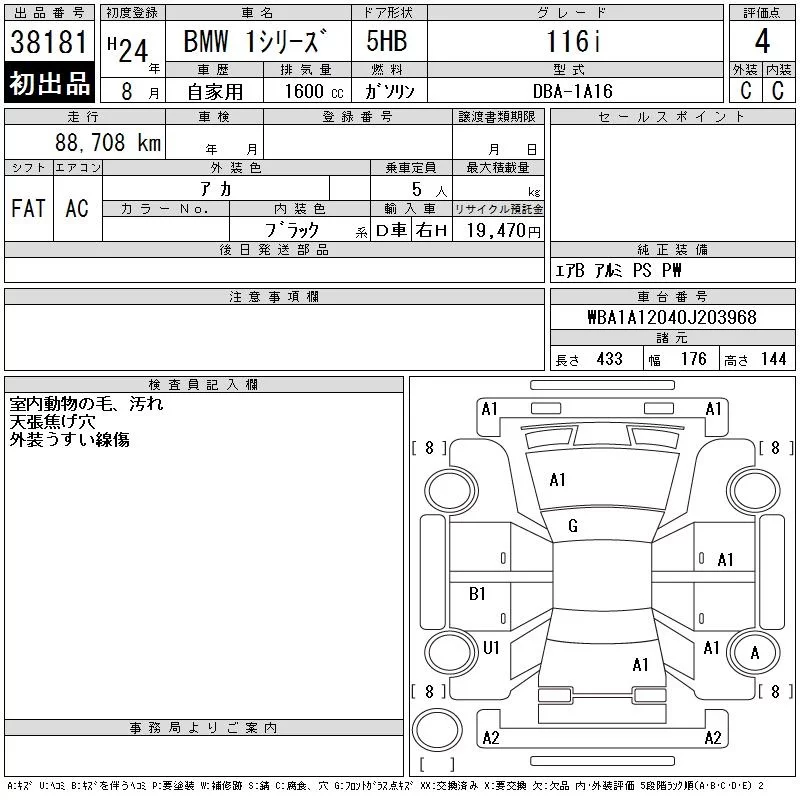 BMW 1-Series с аукциона Японии CAA Tokyo лот № 38181