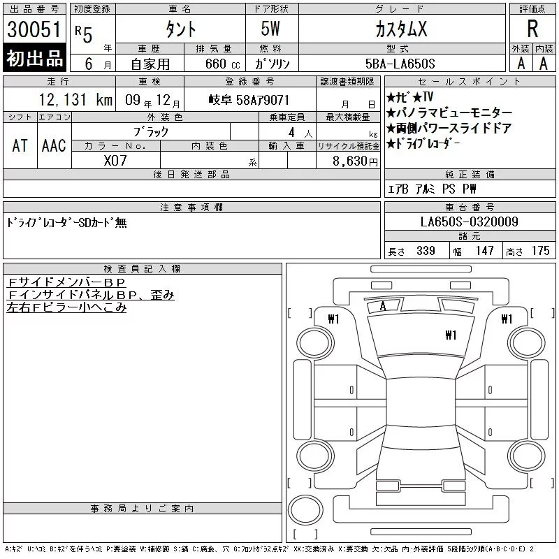 Daihatsu TANTO с аукциона Японии CAA Gifu лот № 30051