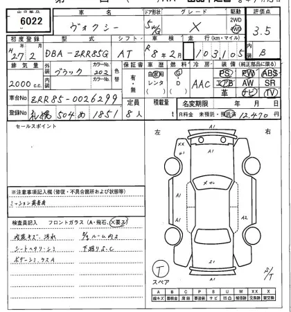 Toyota VOXY с аукциона Японии SAA Sapporo лот № 6022