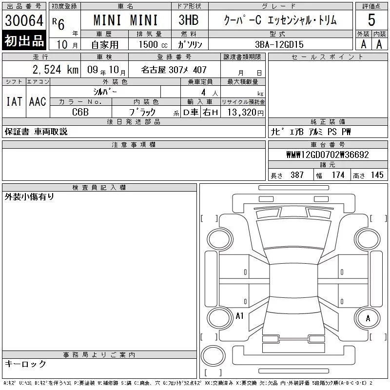 BMW MINI с аукциона Японии CAA Gifu лот № 30064