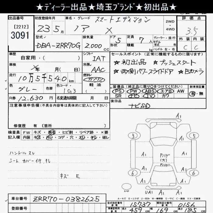 Toyota NOAH с аукциона Японии JU Saitama лот № 3091